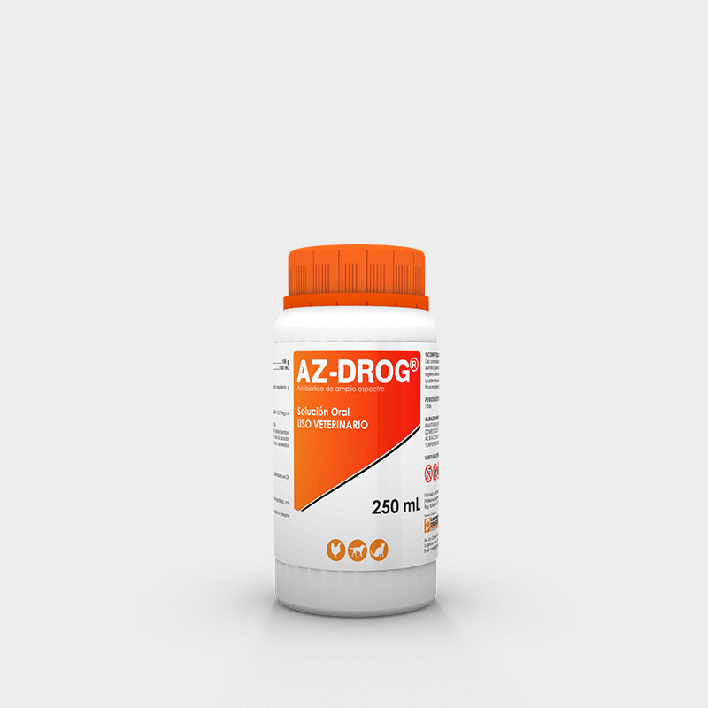 AZ-DROG is a broad spectrum antimicrobial whose active principle is azithromycin, a modern synthetic macrolide with a 15-atom ring, with pharmacokinetic characteristics that allow its administration in a single daily dose and shorten treatment cycles due to its excellent oral absorption, wide distribution and high intracellular penetration, concentrating on fibroblasts and phagocytes.