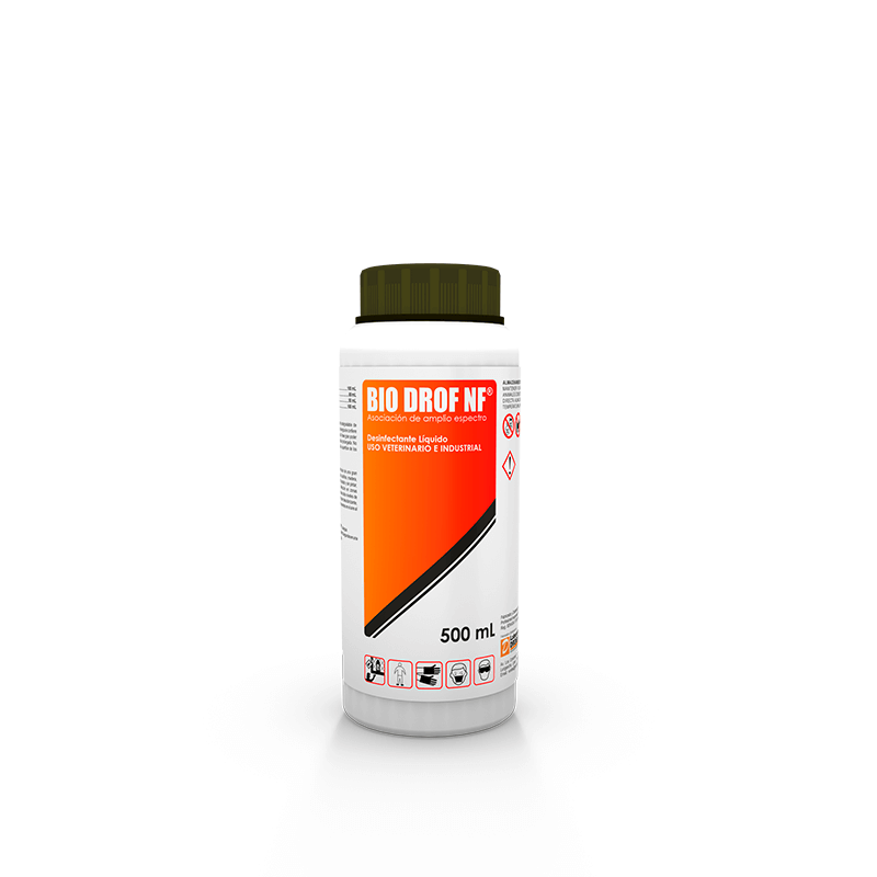 BIO DROF NF está indicado en la desinfección de una gran variedad de superficies (camas, cortinas, bolsas, ladrillos, madera, calaminas, acero inoxidable, aluminio, concreto pintado y sin pintar, plástico, caucho, papel), ideal para la desinfección en zonas calurosas, y de establos o galpones donde existen altos niveles de materia orgánica. BIO DROF NF posee gran poder desodorizante, el cual reduce la cantidad de microorganismos presentes en el aire al aplicarse por aspersión.
