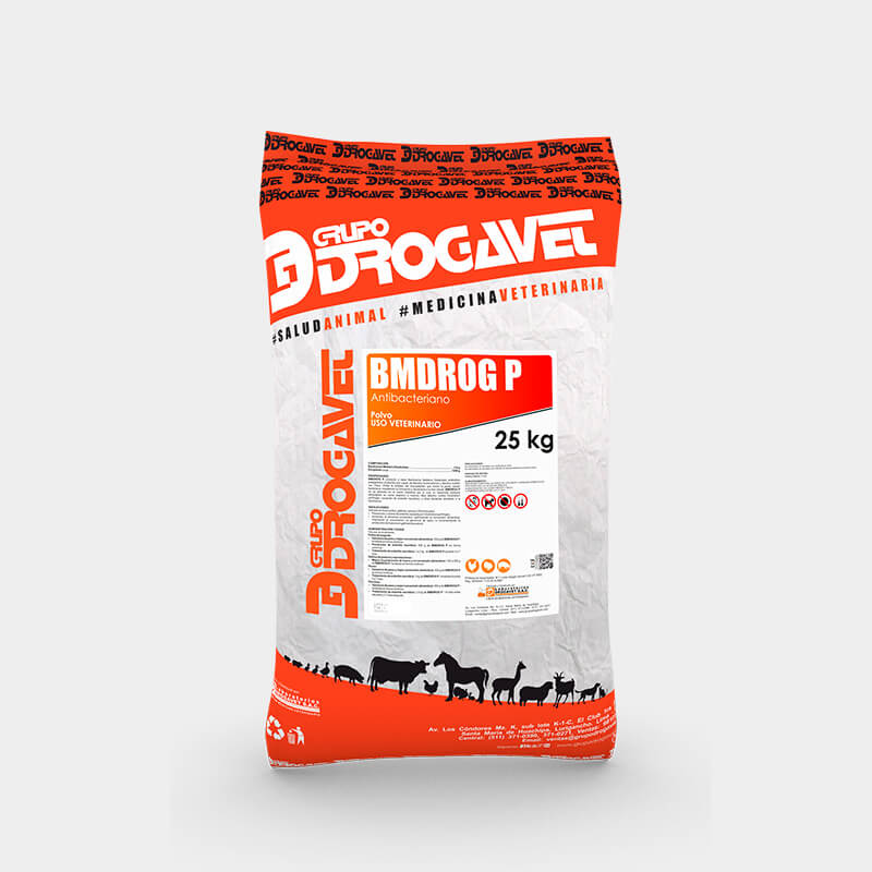 BMDROG P is a polypeptide antibiotic based on bacitracin methylene disalicylate, produced by strains of Bacillus lincheniformis and Bacillus subtilis var. Tracy; It inhibits the synthesis of the mucopeptide that forms the bacterial cell wall, preventing its formation and leading to cell lysis.BMDROG P is not absorbed in the intestinal tract, which is why it does not develop detectable residues in meat (tissues) or eggs. Very effective