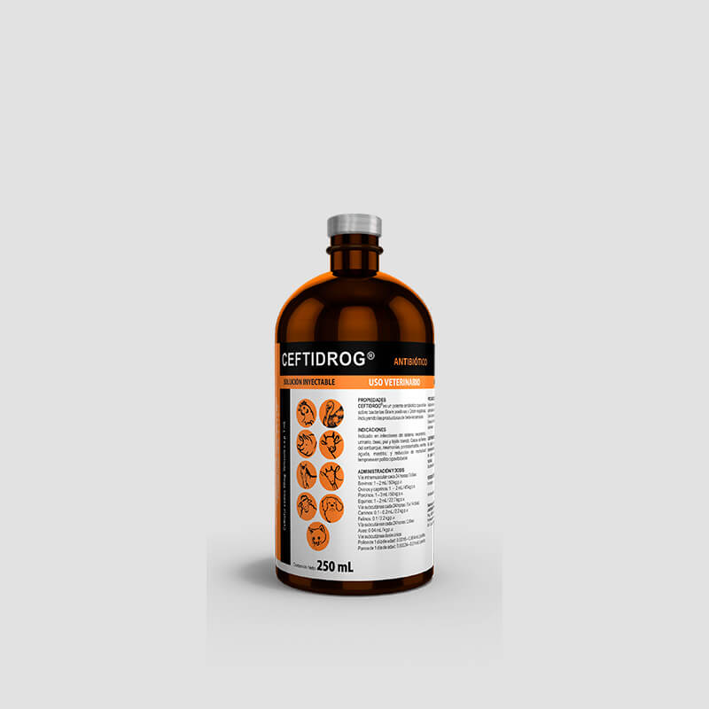 CEFTIDROG is indicated for infections of the respiratory, urinary, bone, skin and soft tissue systems, associated with susceptible microorganisms. Cases of shipment fever, pneumonias, pododermatitis, acute metritis, mastitis; and for the reduction of early mortality in chicks or baby poultry.