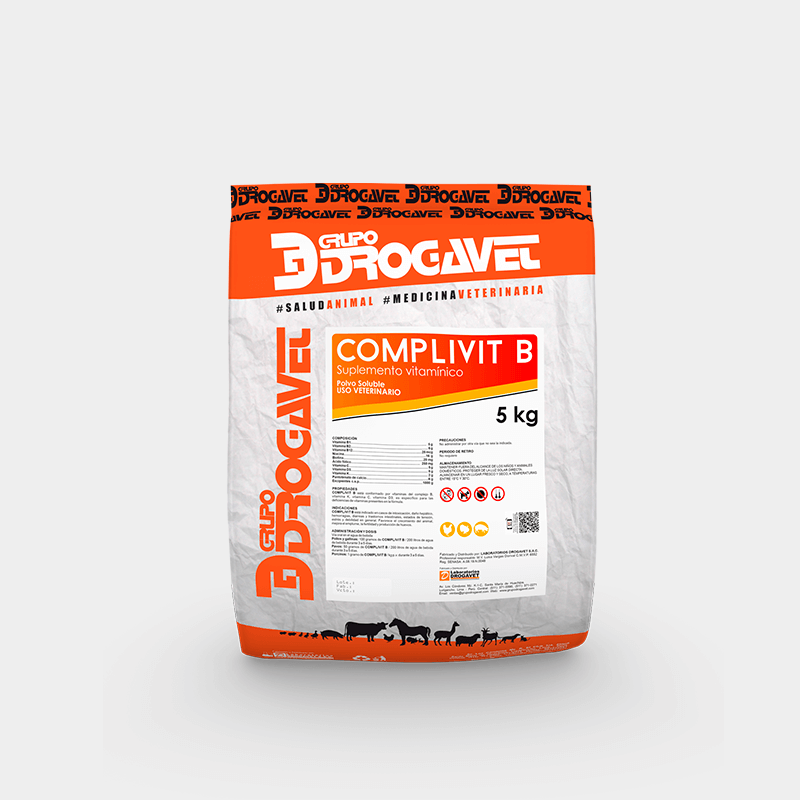 COMPLIVIT B is indicated in cases of intoxication, liver damage, hemorrhages, diarrhea and intestinal disorders, stress and weakness in general. It favors the growth of the animal, improves feathering, fertility and egg production.