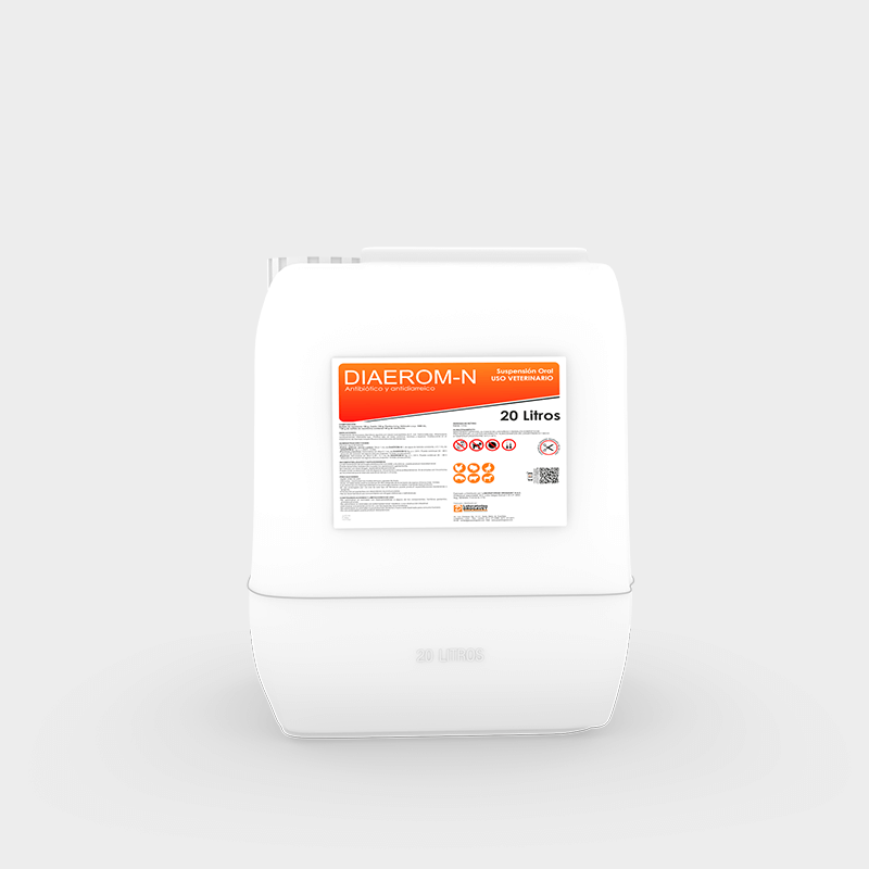 Es una fórmula sinérgica cuyo principio activo es la Neomicina, antibiótico aminoglucósido que no se absorbe vía oral, desempeñando su acción bactericida directamente en el lumen intestinal sobre los frecuentes agentes etiológicos de la diarrea. DIAEROM-N contiene Caolín y Pectina que proporcionan sus propiedades absorbentes y protectoras de la mucosa intestinal frente a toxinas y elementos irritantes; consiguiendo así un producto ideal para contrarrestar la diarrea.