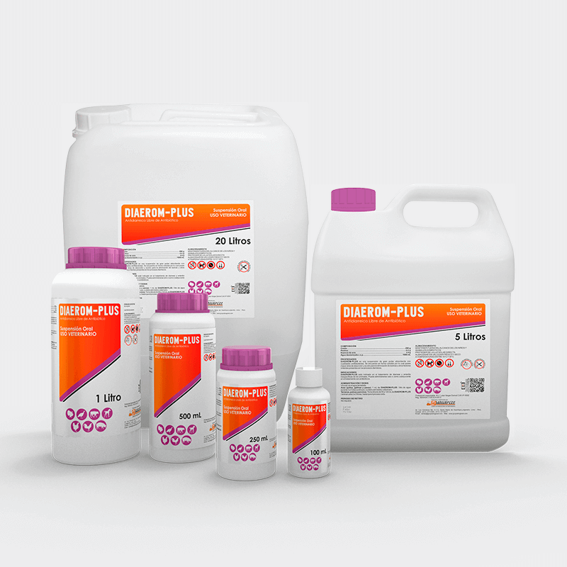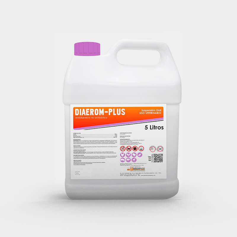 DIAEROM-PLUS is a suspension of great absorbing power with antiflatulent qualities. It is found in colloidal form by means of a special preparation to achieve the minimum size and thus obtain a greater area of absorption and action for the elimination of toxins or other irritating factors present in the diarrheic processes.