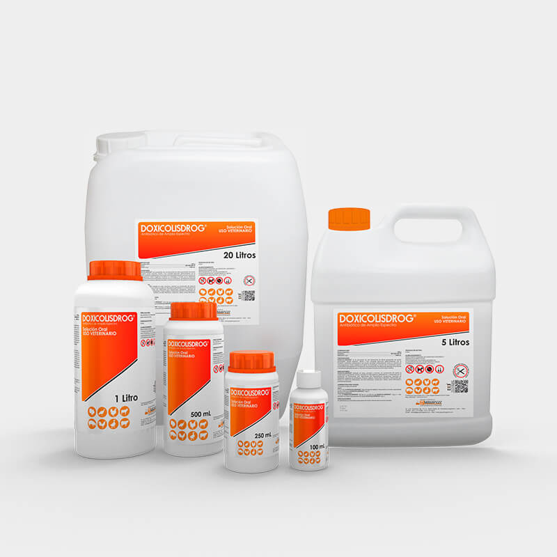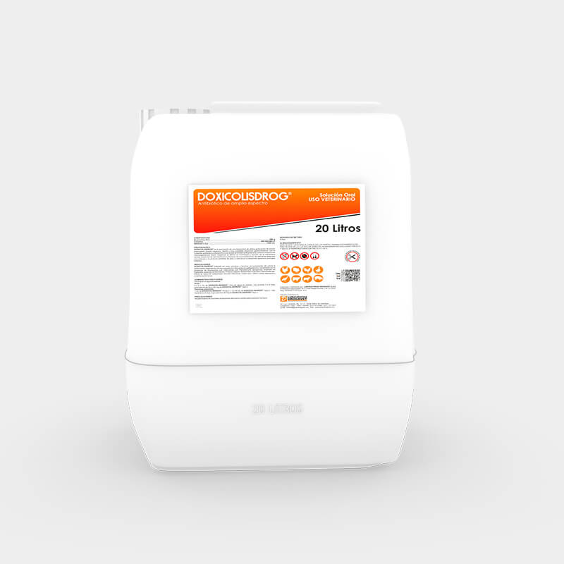 DOXICOLISDROG is the association of a long-acting, last-generation tetracycline, broad spectrum, rapid and very complete gastrointestinal absorption; with colistin, a polypeptide antibiotic that possesses antibacterial activity against most Gram-negative microorganisms by altering the morphology and function of the cell membrane, producing bacterial lysis and blocking of its endotoxins. Does not affect the immune defenses and does not cause weight loss or decrease in the overall development of treated animals.