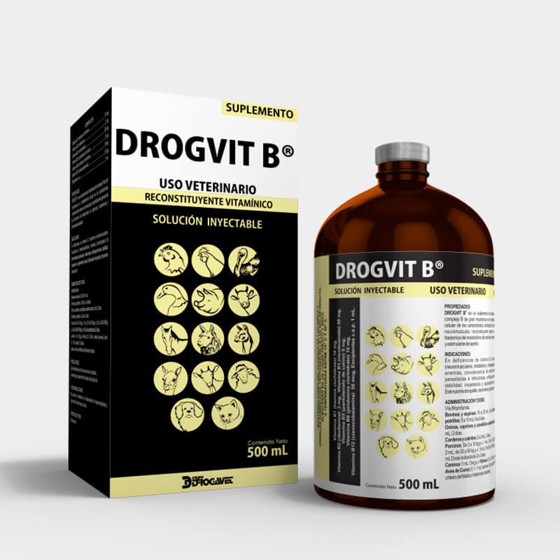 DROGVIT B is a vitamin B complex supplement of great importance in the cellular metabolism of carbohydrates, toner of the neuromuscular system, general reconstituent of protein metabolism disorders, antianemic and appetite stimulant.