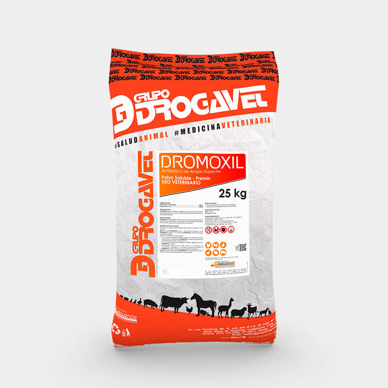 DROMOXIL is indicated in poultry and pigs for the treatment of salmonellosis, colibacillosis, infectious coryza, C.R.D., septic arthritis, pasteurellosis and clostridiosis.