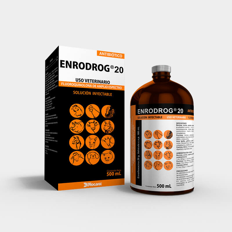 ENRODROG 20 contains a fluoroquinolone with excellent bactericidal activity and broad spectrum of action that includes Gram-positive and Gram-negative bacteria and mycoplasma.