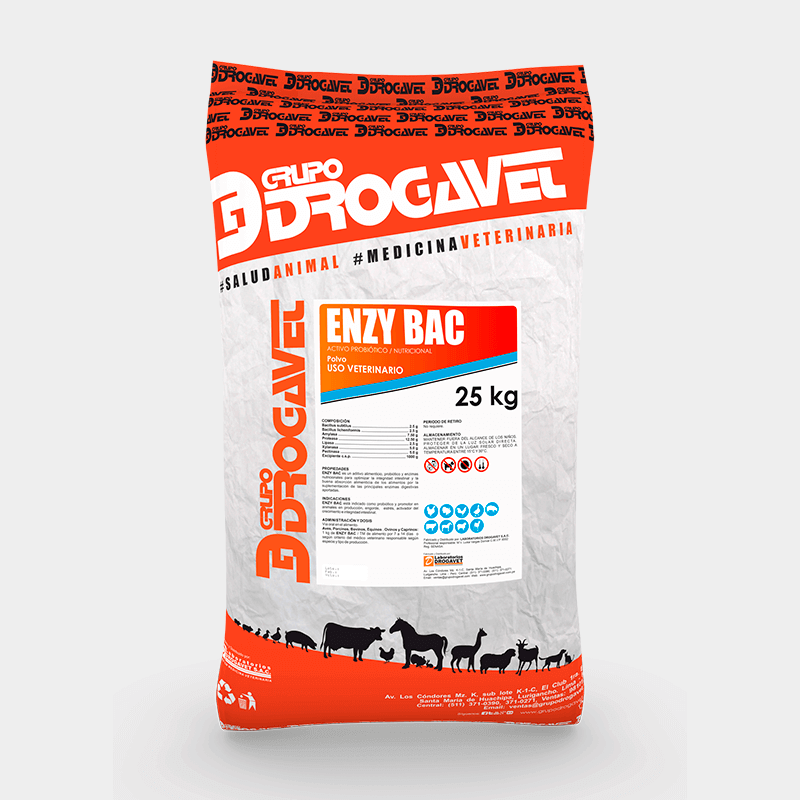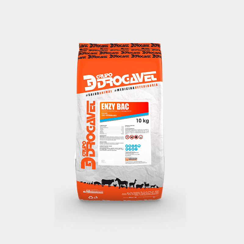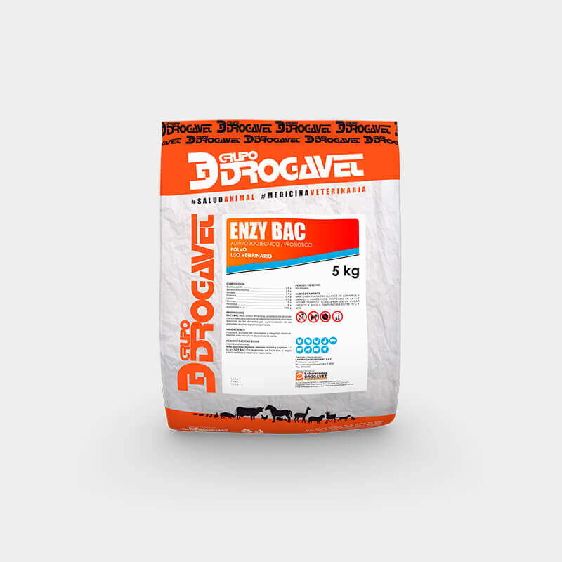 ENZYBAC posee Bacillus subtilis y Bacillus licheniformis que mantienen el equilibrio de la microbiota intestinal (exclusión competitiva) favoreciendo la mejora de los parámetros productivos, incrementando la inmunidad y promoviendo la absorción y digestión de nutrientes. Esto debido a que estos probióticos mejoran la producción de inmunoglobulinas (IgY, IgA y IgM), reducen la expresión de interleuquinas inflamatorias (IL-1, IL-6) y mejora la actividad de las enzimas antioxidantes (superóxido dismutasa, glutatión peroxidasa y catalasa) mejorando de manera íntegra el sistema inmune del animal.