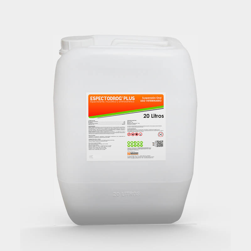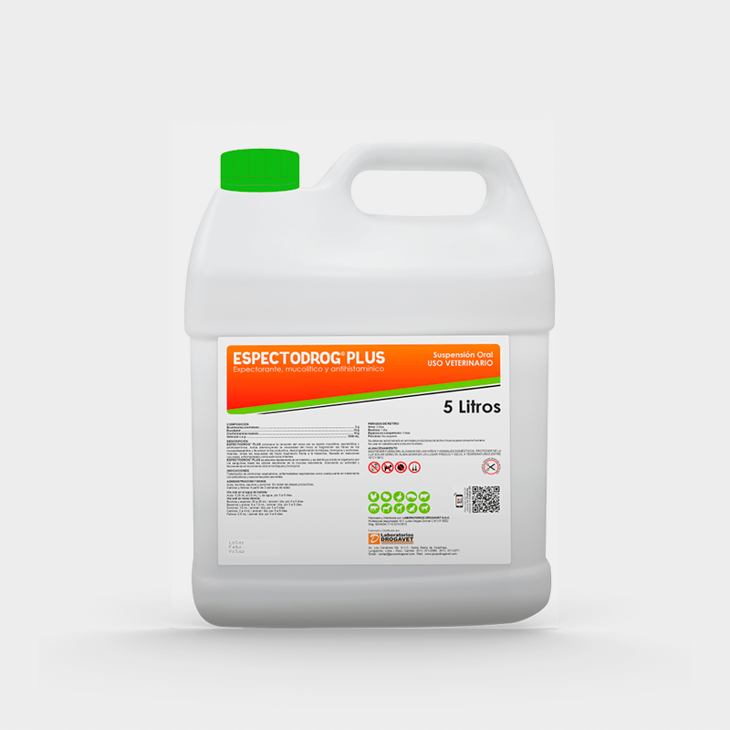 ESPECTODROG PLUS promueve la remoción del moco por su acción mucolítica, secretolítica y antihistamínica. Actúa disminuyendo la viscosidad del moco al fragmentar las fibras de los mucopolisacáridos y favorecer la tos productiva, descongestionando la tráquea, bronquios y pulmones. Además, inhibe las respuestas del tracto respiratorio frente a la histamina, liberada en reacciones vacunales, enfermedades u otros estímulos irritantes.