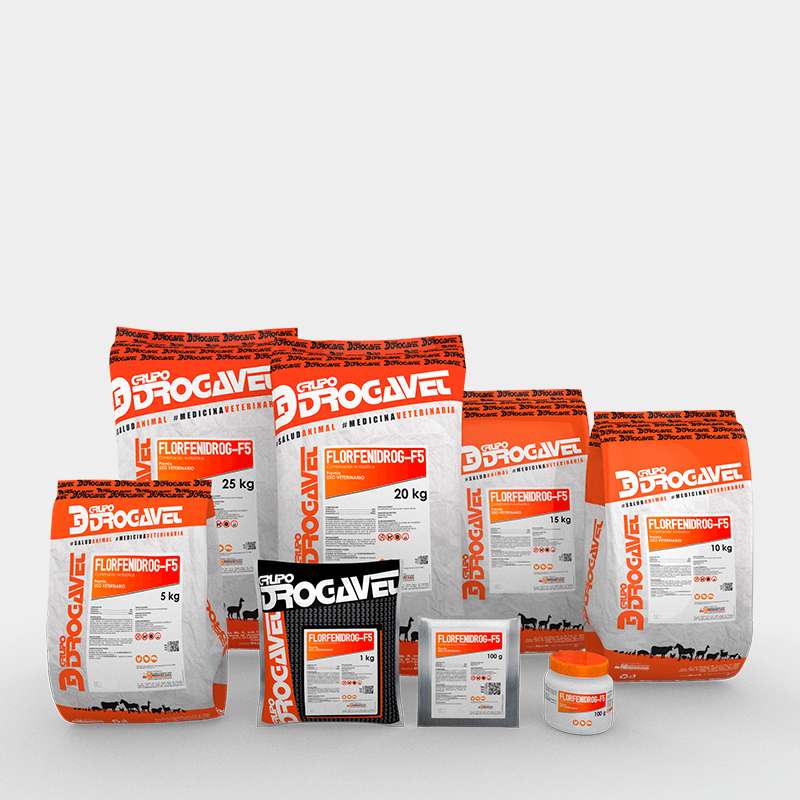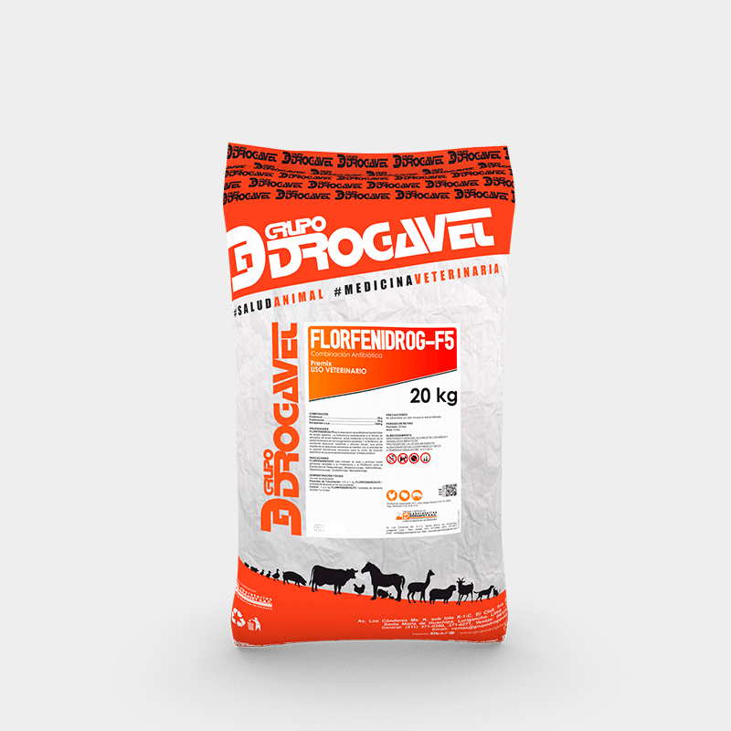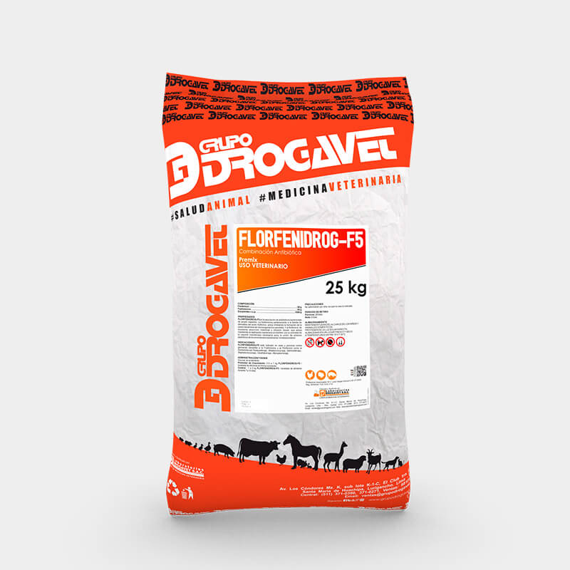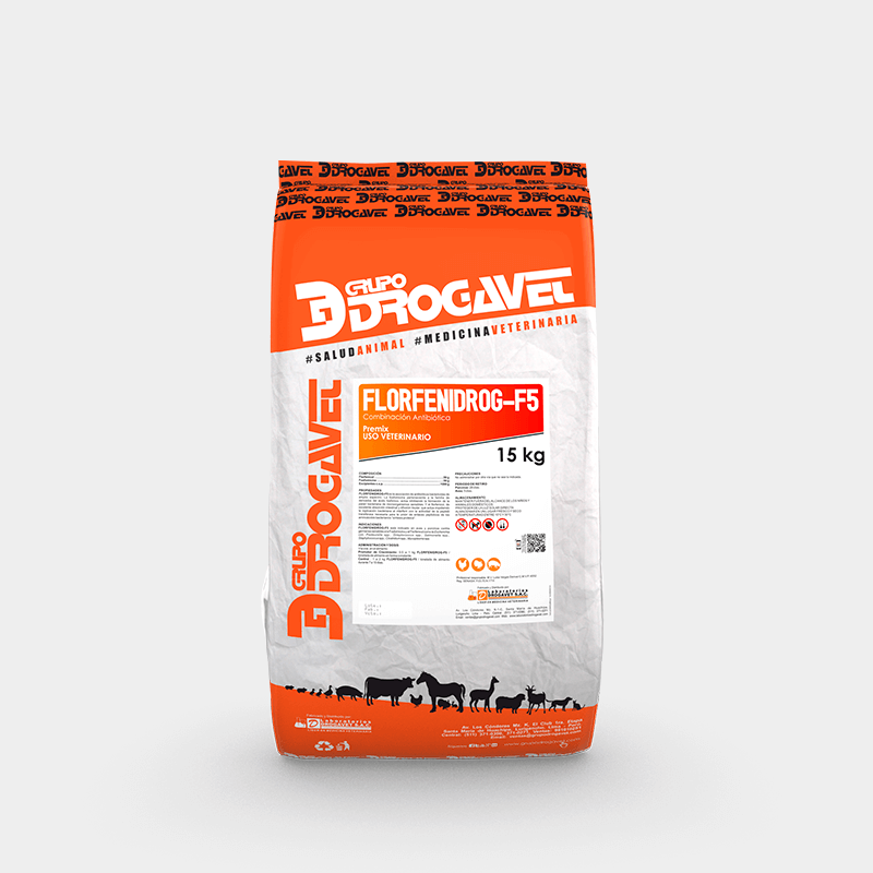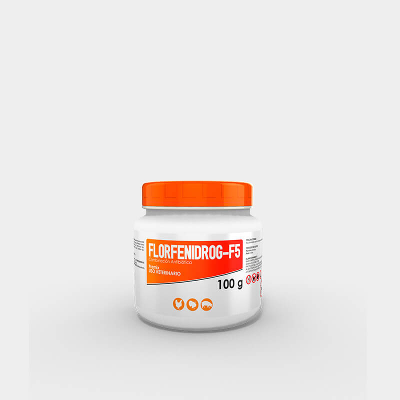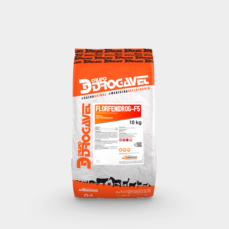 FLORFENIDROG -F5 es la asociación de antibióticos bactericidas de amplio espectro. La fosfomicina perteneciente a la familia de derivados del ácido fosfónico, actúa inhibiendo la formación de la pared bacteriana de microorganismos sensibles. Y el florfenicol, de excelente absorción intestinal y difusión tisular, que actúa impidiendo la replicación bacteriana al interferir con la actividad de la peptidil transferasa necesaria para la unión de enlaces peptídicos de los aminoácidos bacterianos “síntesis proteica”.