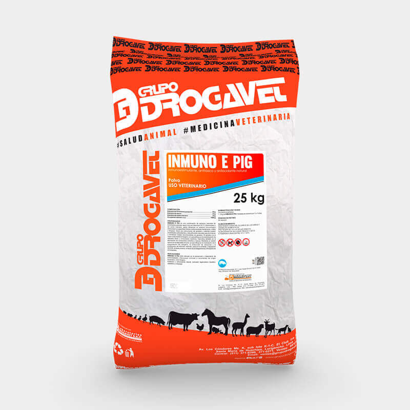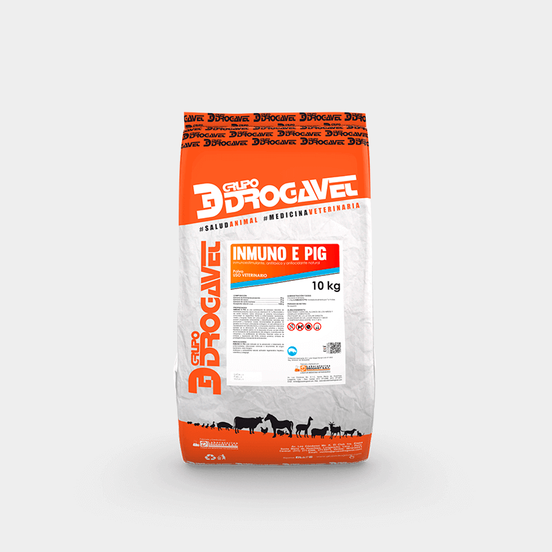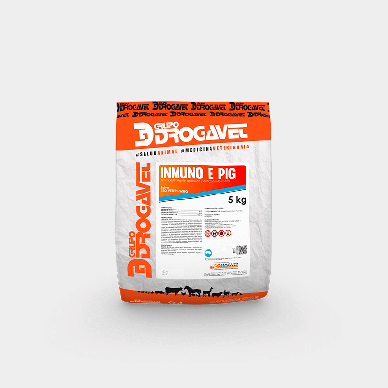INMUNO E PIG is a combination of natural extracts of Echinacea purpurea, elderberry (rich in vitamin A, B, C, and flavonoids), and milk thistle, powerful antioxidants and natural detoxifiers that strengthen the immune system (non-specific immunity) against bacterial, viral, and fungal diseases, which are precursors of glutathione.