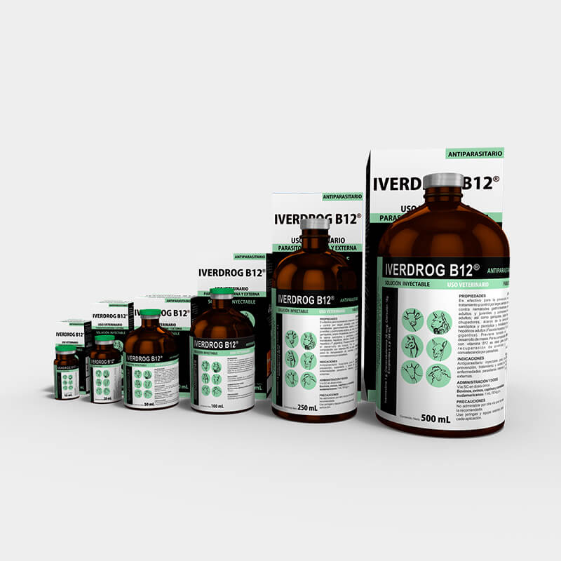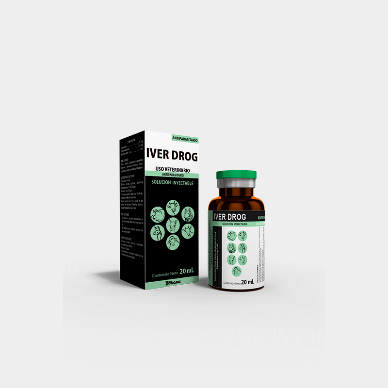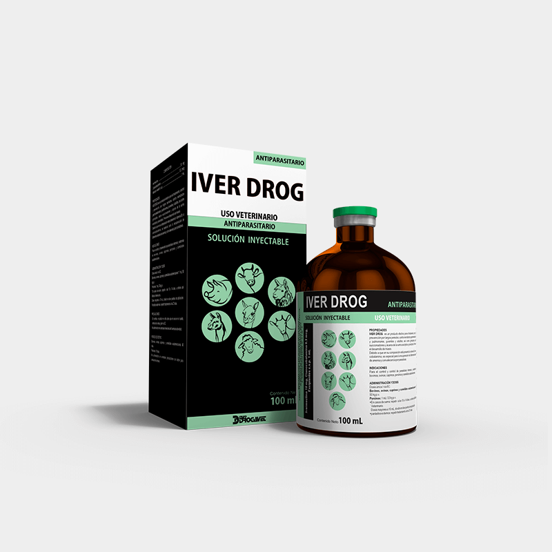 IVER DROG is an effective product for the treatment, control and prevention, for long periods, against gastrointestinal and lung nematodes, juveniles and adults; as well as ticks, sucking lice and mites of sarcoptic and psoroptic mange. Prevents the development of myiasis.Because vitamin B12 or cyanocobalamin is present in its composition, it is special for the recovery of different states of anemia and convalescence due to parasitosis.