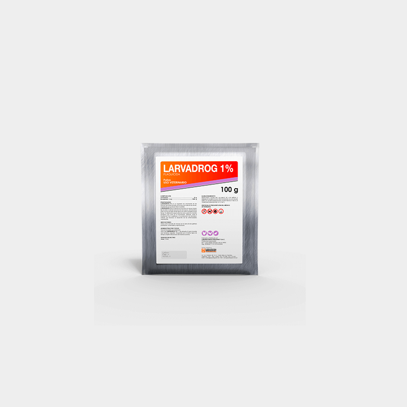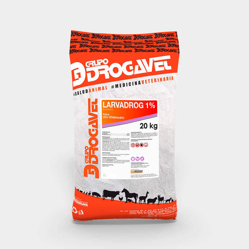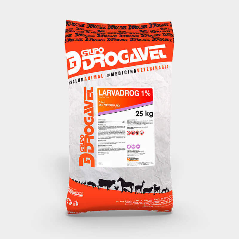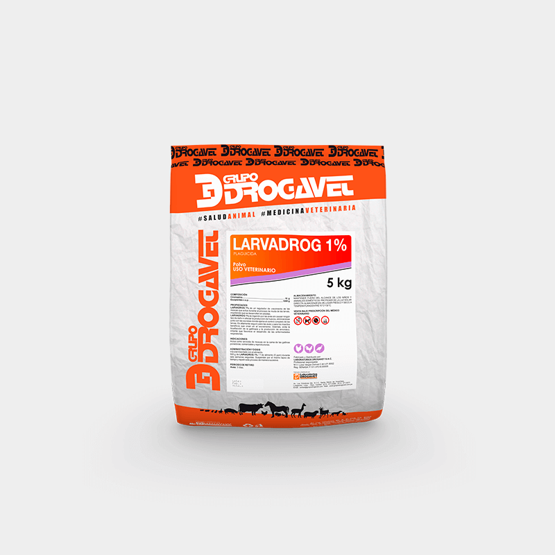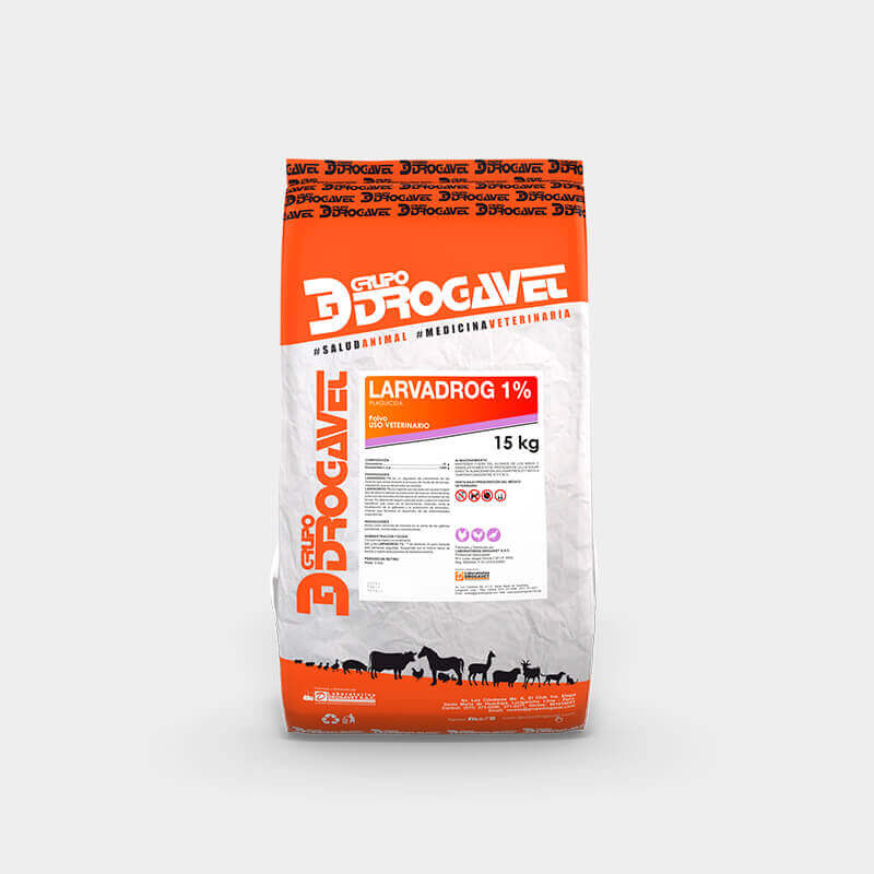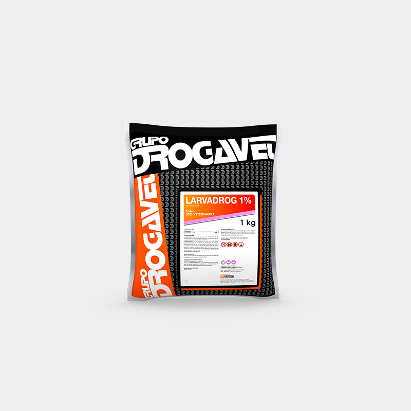 LARVADROG 1% es ingerido por las aves sin causar ningún tipo de daño ni afectar la producción de huevos, eliminándose junto con las excretas donde ejerce el control completo de las larvas. Es altamente seguro para las aves y para los insectos benéficos que viven en el excremento. Además, evita la licuefacción de la gallinaza y la producción de amoniaco, irritante que favorece el desarrollo de las enfermedades respiratorias.