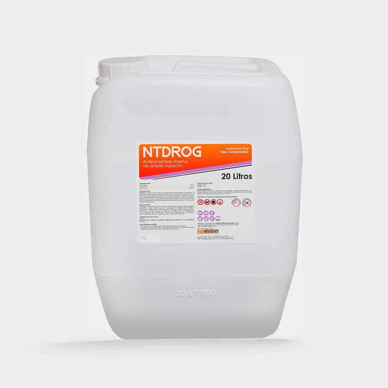 NTDROG, está formulado en base a una asociación de fenbendazol y praziquantel. El fenbendazol inhibe los mecanismos de asimilación de glucosa, la producción de ATP y la utilización del glucógeno del nematodo, en ausencia de energía el parásito finalmente muere.