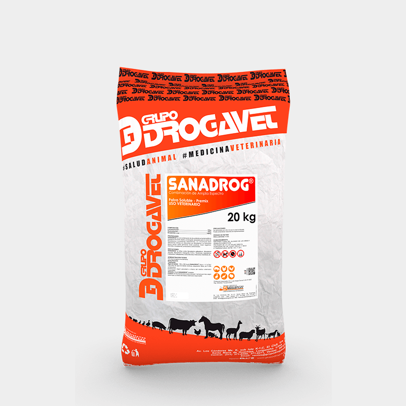 SANADROG is indicated in poultry (chickens, turkeys, ducks, roosters, rearing layers and rearing breeders) for the treatment of respiratory syndromes, Mycoplasma spp., C.R.D., colibacillosis, colisepticemia, infectious coryza, avian cholera, clostridiosis.