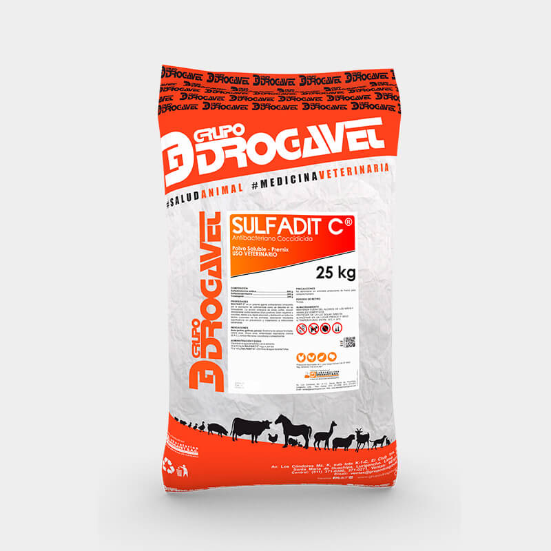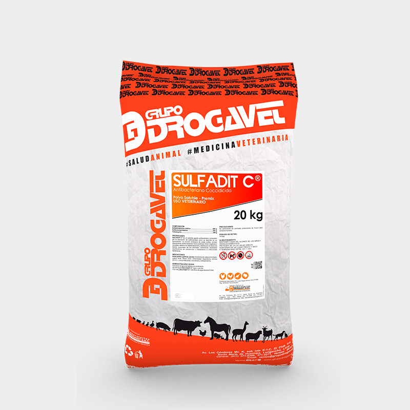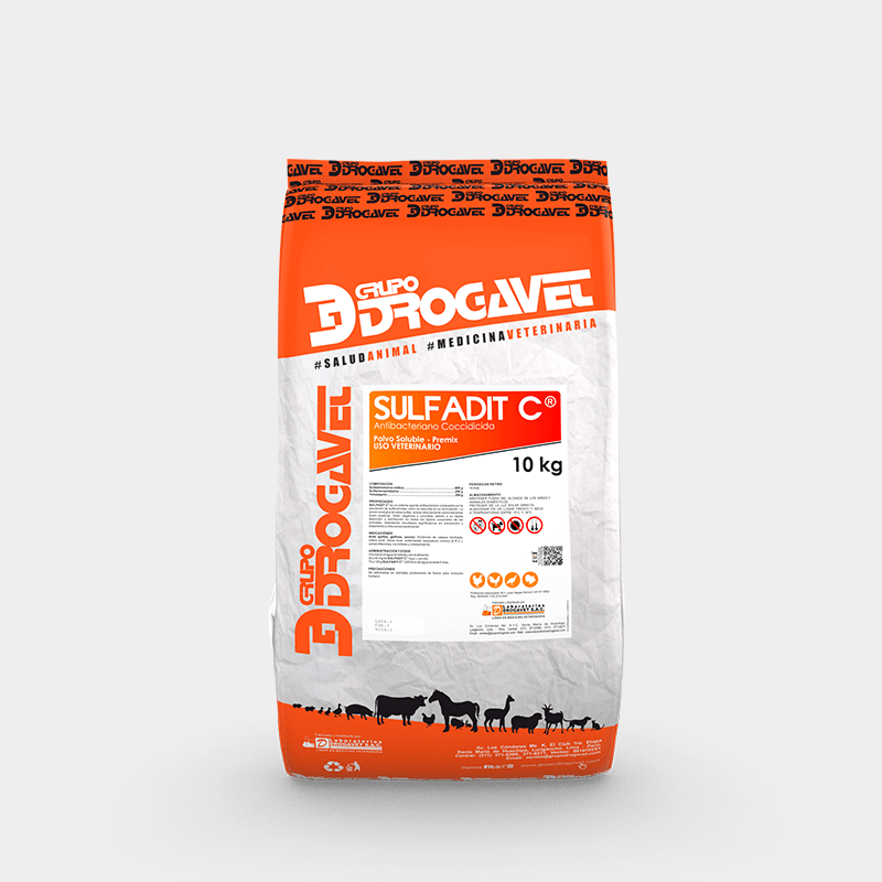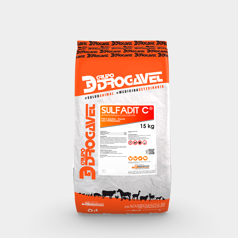 SULFADIT C is a potent antibacterial agent composed of the combination of sulfonamides and trimethoprim. The synergistic action of its components, acts directly against Gram-positive, Gram-negative bacteria and coccidia due to its rapid absorption and distribution in all significant tissues. Its use is recommended in the prevention and treatment of bacterial infections.