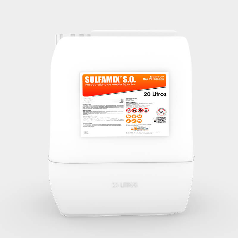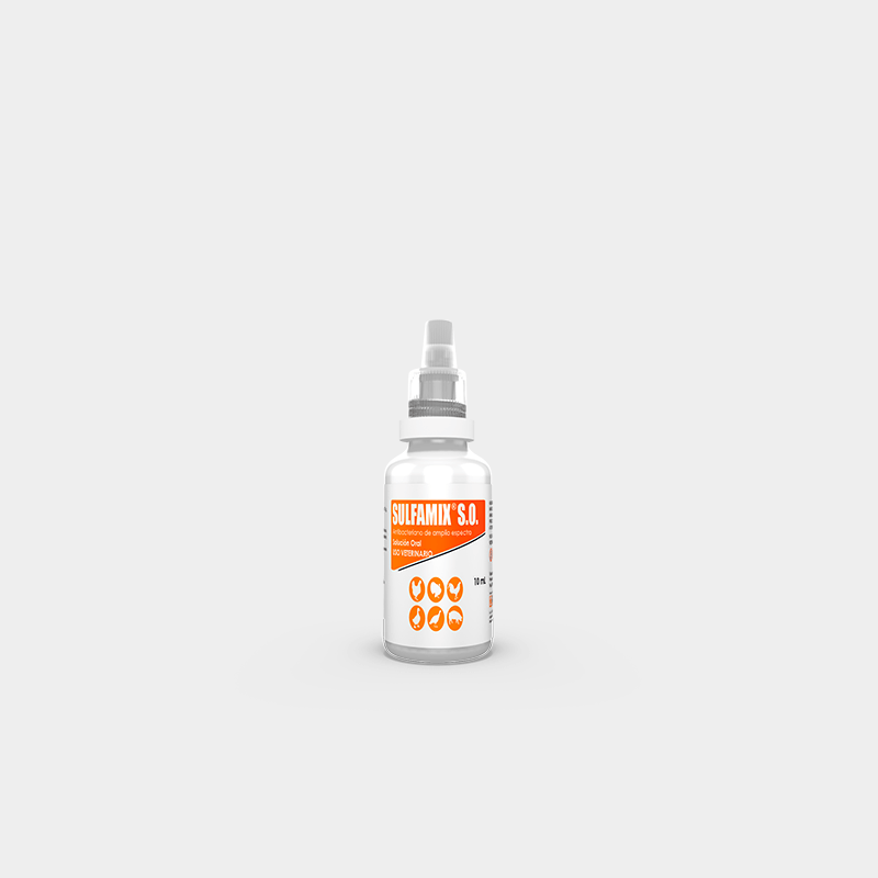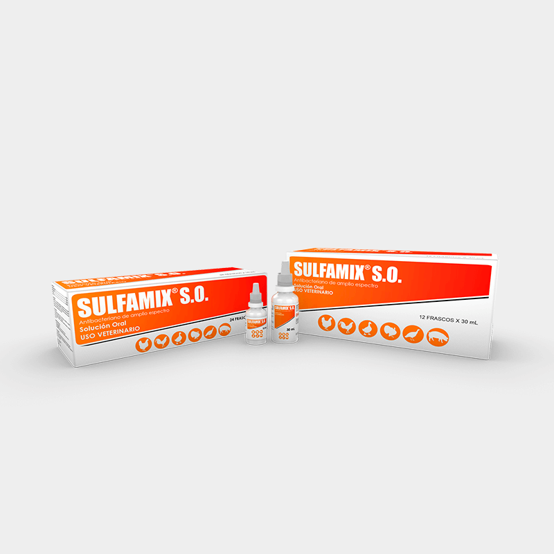 SULFAMIX S.O. is a potent combination of chemotherapeutic agents with a high bactericidal activity. The synergistic action of SULFAMIX S.O. It acts directly against Gram-positive and Gram-negative bacteria, associated with its rapid absorption and distribution in all body tissues. Its elimination is through the kidneys.