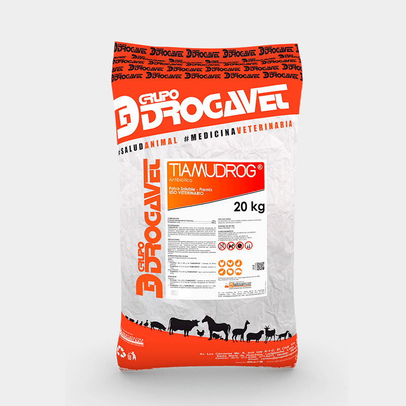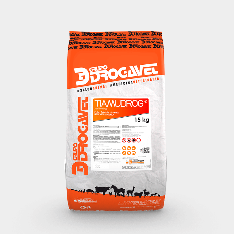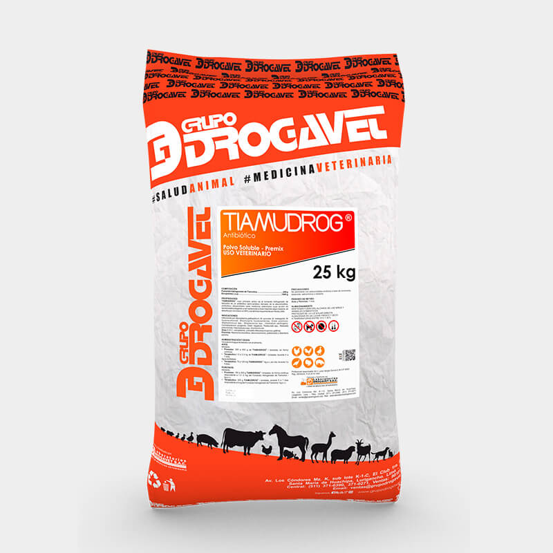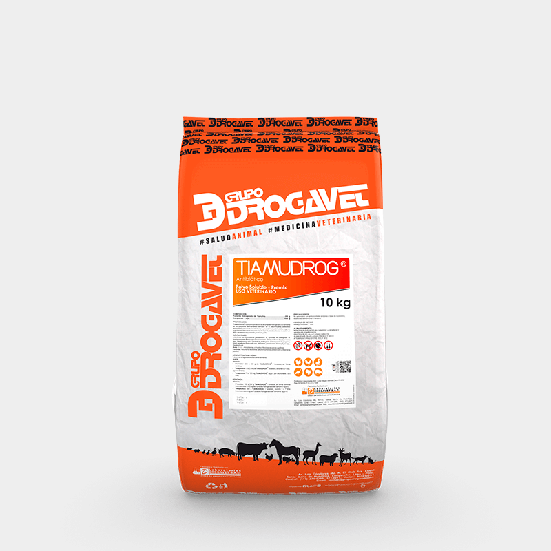 TIAMUDROG whose active ingredient is the hydrogenated fumarate of tiamulin is a semi-synthetic antibiotic derived from pleuromutilin, an antibiotic developed for veterinary medicine whose action is bacteriostatic becoming bactericidal at higher doses according to species, it is absorbed orally by 90% and it is eliminated mainly by faeces and bile.