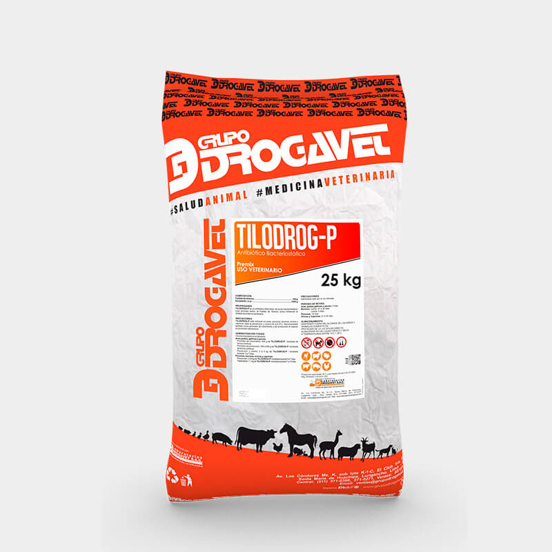TILODROG-P is indicated in poultry, swine, cattle, sheep and goats; for the prevention and control of the respiratory chronica disease. Recommended also as a promoter of growth and production to improve feed conversion.
