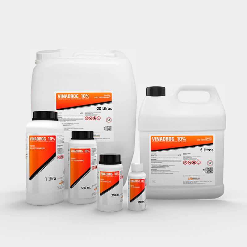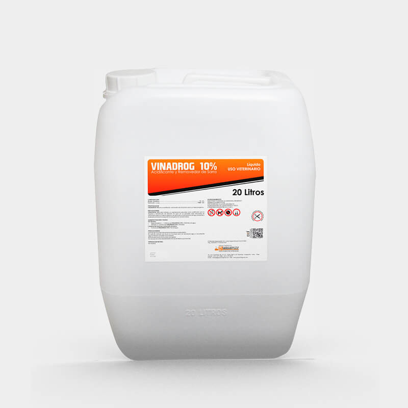 VINADROG 10% es un acidificante y sanitizante del agua de bebida y alimento.